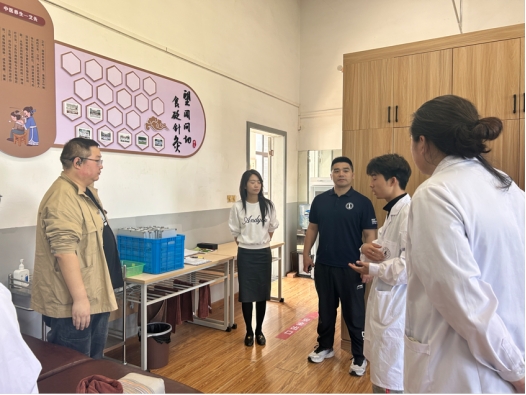 讲座结束后,学院王雪、舒兰清老师陪同朱文彬总经理参观了康养实训室和善养康复实践基地,介绍了实训建设及校企合作成果,朱总对学院实训建设水平给予充分肯定。